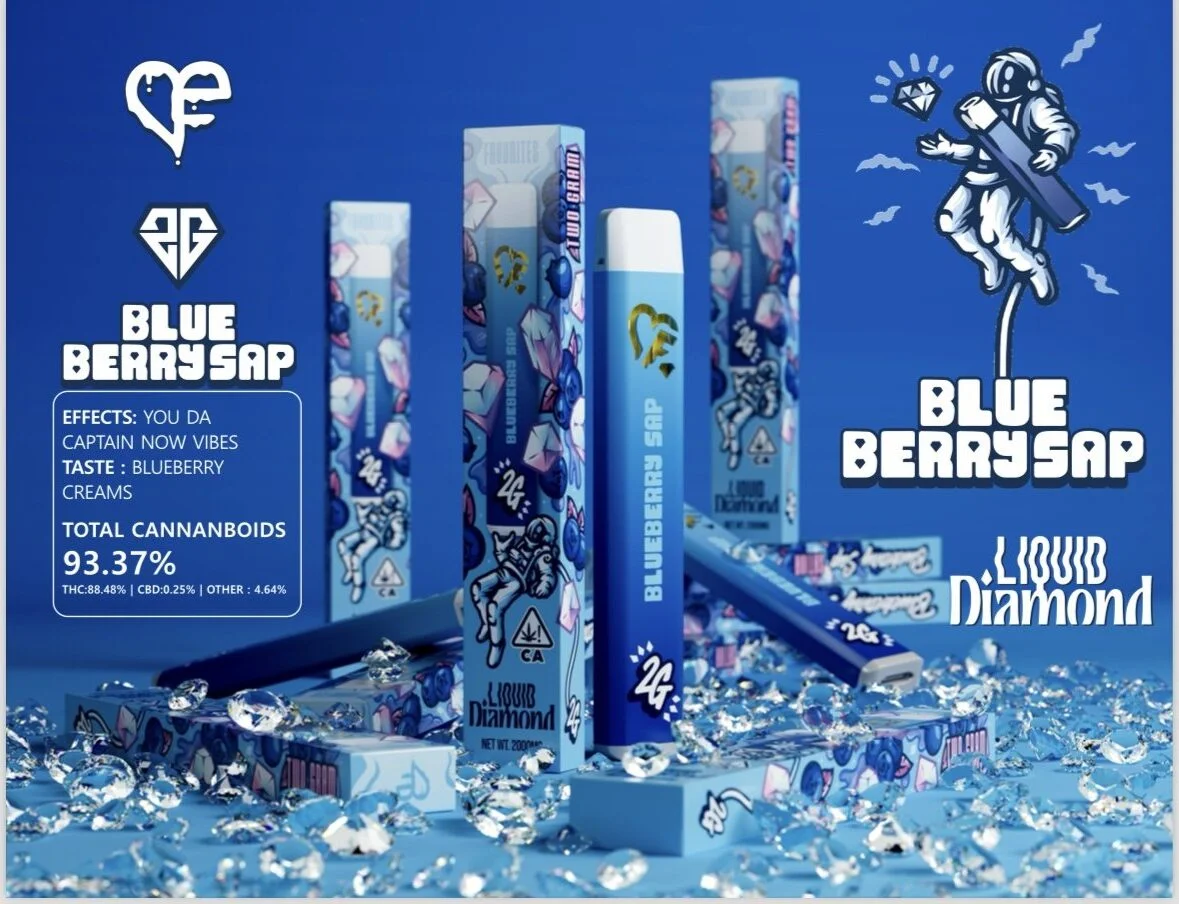 At the heart of the Favorites Blueberry Sap vape is its powerful liquid diamond extract – a premium cannabis concentrate made from THCA crystals. Once decarboxylated, these crystals deliver pure, potent THC, often exceeding 90% purity. That means every puff hits harder, lasts longer, and delivers the kind of full-body effects that seasoned users crave.