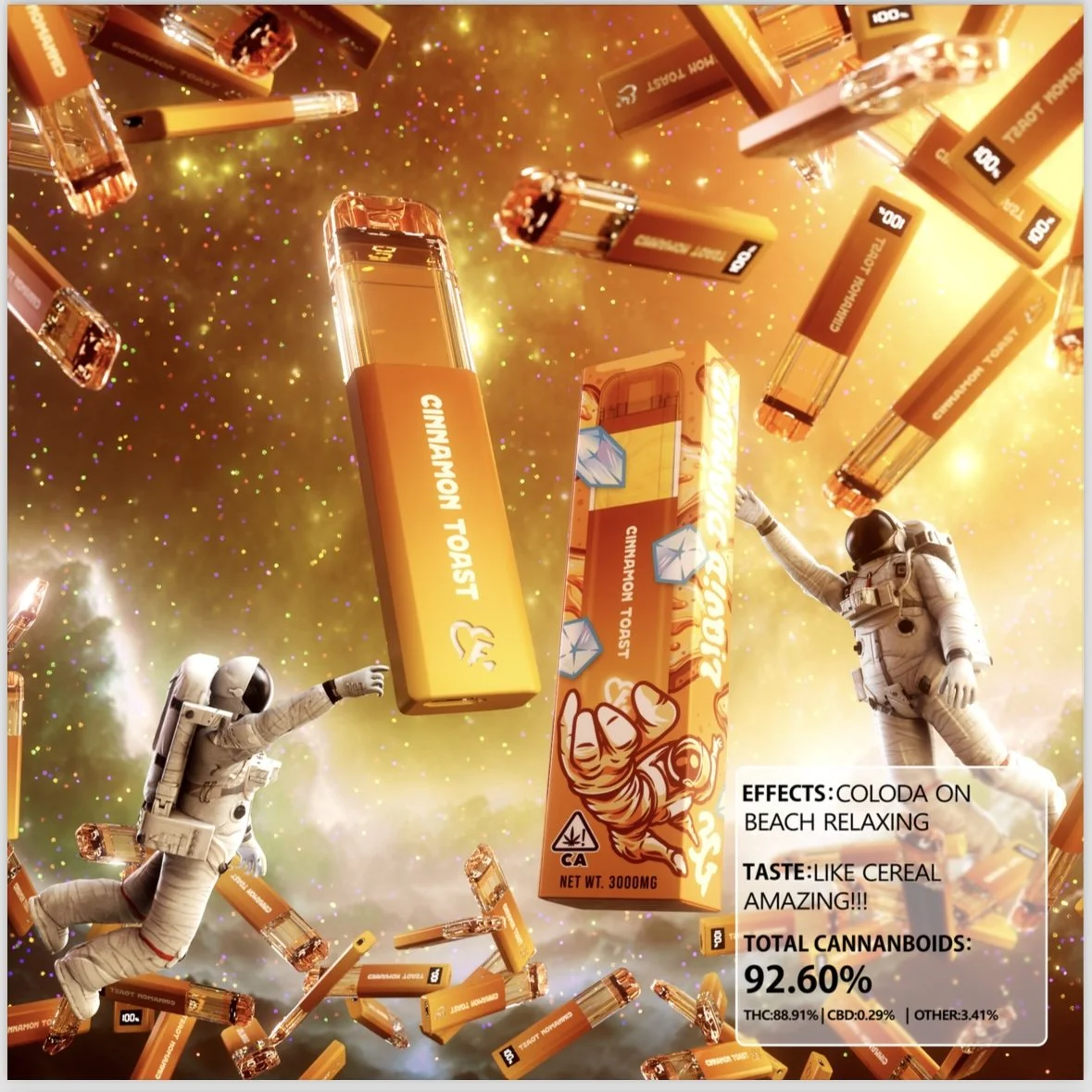 If you’re searching for a THC disposable that hits hard and tastes like your favorite cinnamon-sugar breakfast cereal, the Favorites Cinnamon Toast Disposable 3g is your go-to pick. This powerhouse vape combines premium liquid diamonds extract, rich cinnamon flavor, and ultra-potent 3g capacity to give you a vaping experience that’s anything but ordinary.