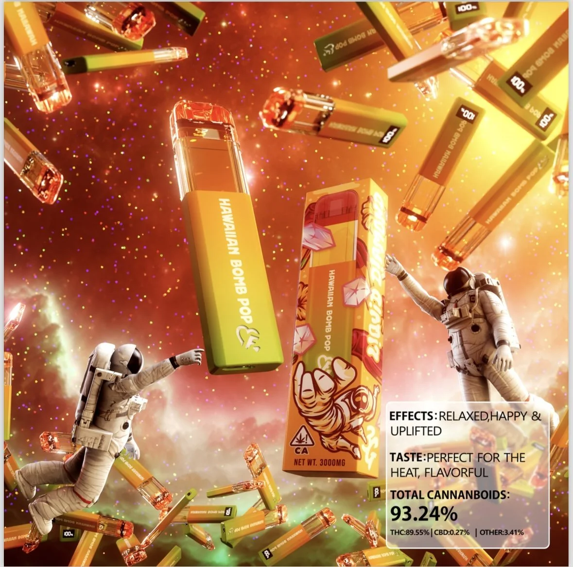 This isn’t your average THC cart. The Hawaiian Bomb Pop 3g Disposable is a standout thanks to: